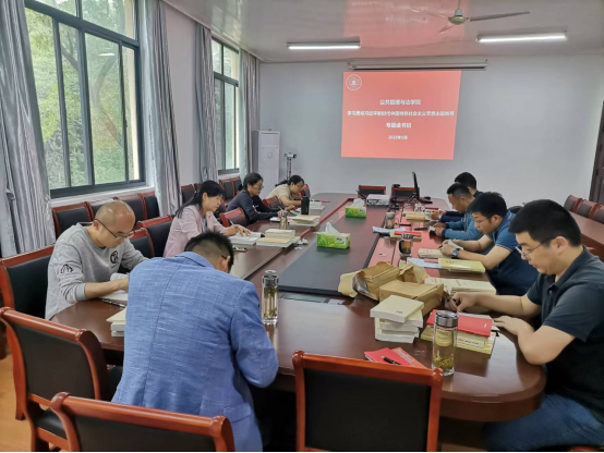 学习贯彻习近平新时代中国特色社会主义思想主题教育专题读书班在学院会议室举行第一次专题学习,逐篇逐段、逐字逐句地集体研读了习近平同志2022年10月16日在中国共产党第二十次全国代表大会上所作的报告《高举中国特色社会主义伟大旗帜 为全面建设社会主义现代化国家而团结奋斗》。