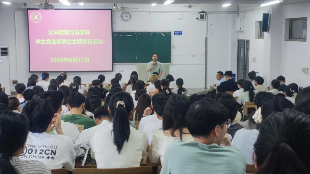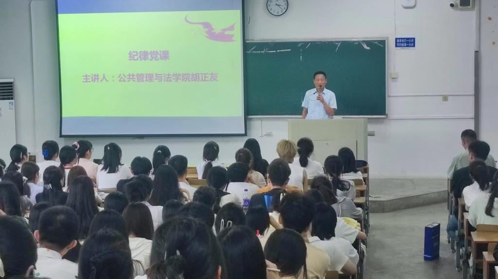 胡正友以“遵规守纪,青年党员扣紧第一粒扣子”为题,为全体党员讲授了纪律党课。他带领大家学习了习近平总书记关于党的纪律建设的重要论述,传达了中央党的建设工作领导小组会议和中共中央办公厅《通知》精神、校党委关于开展党纪学习教育的部署;介绍了学院党委和各党支部组织开展党纪学习教育的基本情况。他对《中国共产党纪律处分条例》进行了解读,要求全体党员以“学”纪为根本,切实成为遵规守纪的明白人。他强调,全体党员要深入“知”纪、自觉“明”纪、坚决“守”纪,守住红线、不碰高压线。他希望学生党员扣紧党纪“第一粒扣子”,从入党之初做起、从现在做起,持续加强党性锤炼,不断提高自身修养,时时警醒自我,始终做遵规守纪的合格党员。他要求在校学生党员始终做到政治自律、学习自律、生活自律,继续在日常学习、生活和工作中发挥先锋模范作用;他希望并祝愿全体毕业生党员始终严格要求自我,用好党纪“紧箍咒”“护身符”,在新的岗位、新的角色继续闪光发彩。