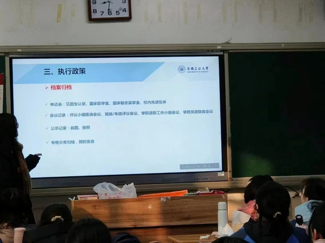学生资助政策的详细内容,利用辅导员提供的材料制作能够充分展现我校资助育人、助力梦想放飞的PPT。同时提前与母校老师对接,约定好资助政策宣传活动的开展时间和地点,由老师安排无为中学高三年级部分家庭困难学生和高三十九班全体同学参与本次宣传活动。