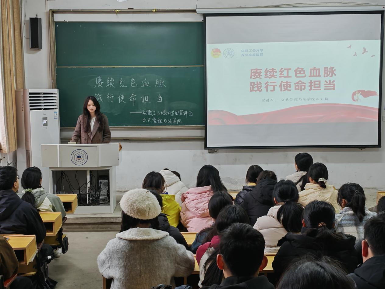为进一步引导广大青年学习贯彻党的二十届三中全会精神,了解习近平总书记在全国教育大会上的重要讲话精神,校第九届优秀学子宣讲团成员燕文勤于3月3日在佳山校区教一115教室开展“赓续红色血脉,践行使命担当”主题宣讲活动,51视频