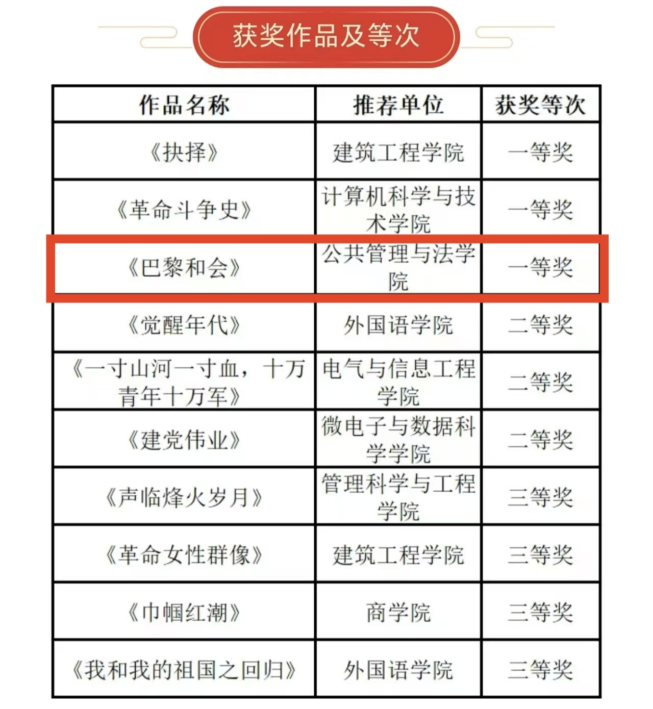 荣获优秀组织奖,公法学子在活动中大放异彩,作品《巴黎和会》荣获一等奖。
