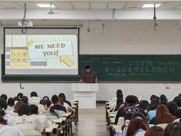 在教三南203教室举办了2025级新生部门宣讲大会。学院各部门负责人、工作人员及全体2025级新生参加了此次宣讲活动。