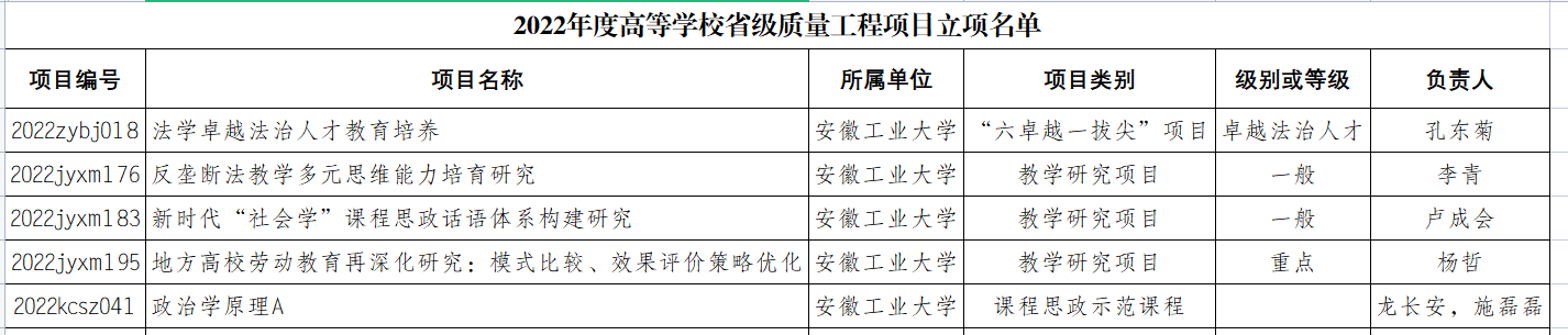 近日,安徽省教育厅公布了 2022年高等学校省级质量工程项目立项名单(皖教秘高〔2023〕56 号),51视频 共5个项目获批立项,包括“六卓越一拔尖”项目1项、课程思政示范课程1项、教学研究项目3项。