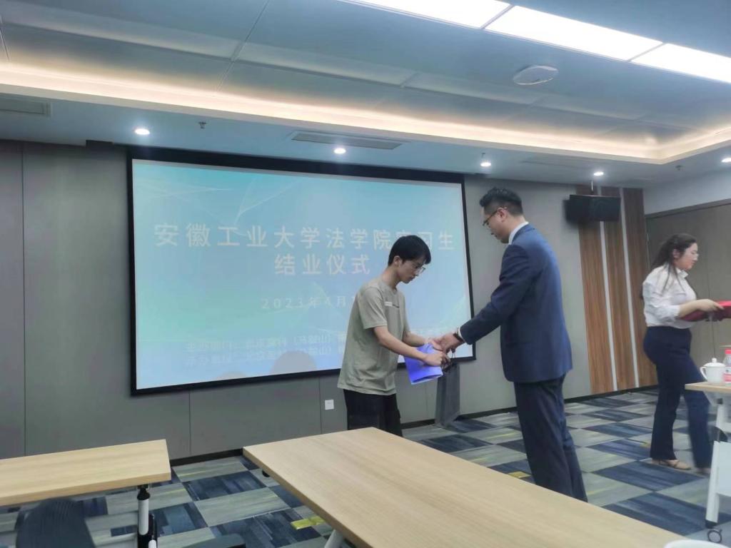 法学系法学专业本科毕业班9名同学顺利结束了在北京盈科(马鞍山)律师事务所为期一个月的毕业实习。盈科(马鞍山)律师事务所为此专门组织了一次结业仪式,并为学生们颁发了结业证书与结业礼。北京盈科(马鞍山)律师事务所管委会副主任、行业导师姜海平主持人结业仪式。盈科所党支部书记魏广金等领导及指导老师、51视频
