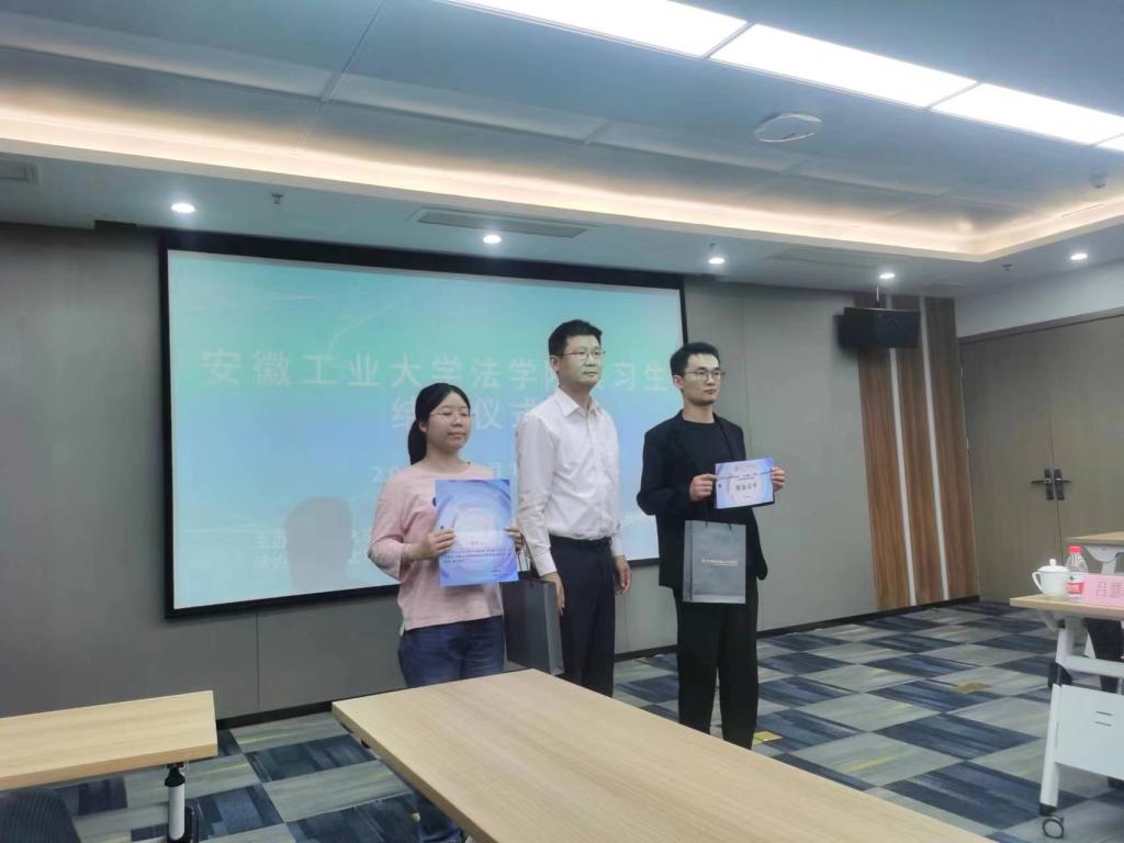 法学系主任徐刚、党支部书记戚枝淬应邀参加了结业仪式。仪式上,盈科所指导老师代表及实习学生代表分别进行了发言。结业仪式上双方还就加强进一步深化校企合作进行了交流。