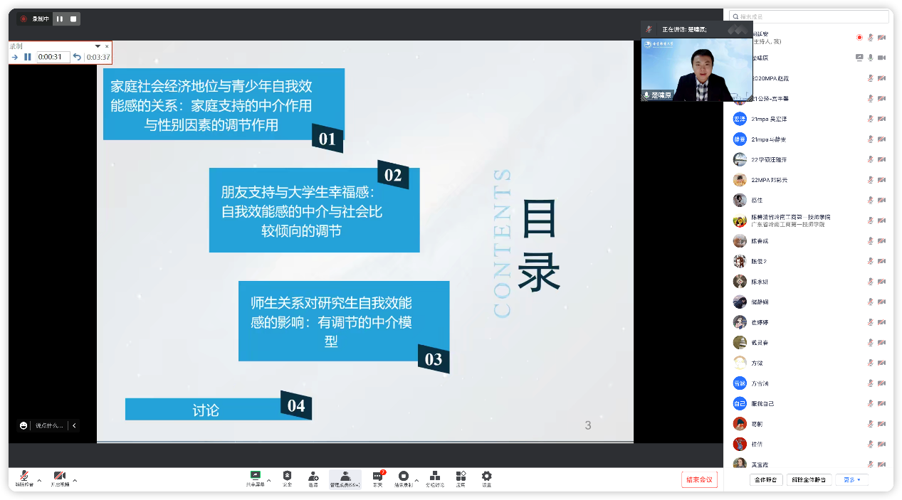 学术研究生以MPA做学术报告。会议由MPA教育中心问延安老师主持。