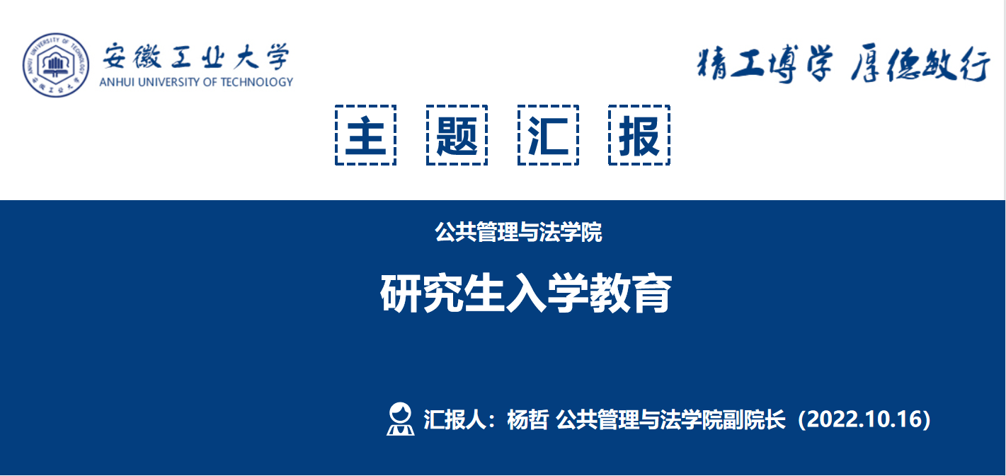 师资概况,强调学生应积极主动与导师进行学术交流;二是2022级硕士研究生未来发展。深入阐明研究生阶段应当恪守的科学道德和科研伦理,并强调严谨的科学态度和强烈的社会责任感是治学与成才的必备素养。全体研究生应该以习近平总书记在党的二十大提出“青年强,则国家强”为使命。坚定理想信念,不忘研究初心、牢记创新使命,聚焦科学研究,恪守学术规范,尽早进入研究角色;三是研究生学位论文管理。希望全体新生以学术毕业论文为起点,注重文献阅读,积累学术成果,加强团队合作,加强学术交流,开阔视野;四是研究生违纪处理。解读了学校的相关制度规定,主要包括学术道德规范、校园秩序管理、疫情防控管理、学生公寓管理、校园行为规范等。