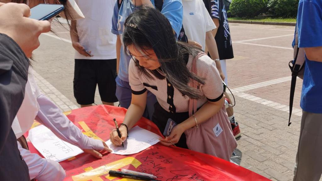 承办,两校区两千余名学生共同参与。通过前期发布第二课堂活动,学生们踊跃报名,积极参与本次活动,在红色条幅上留下自己的签名。51视频