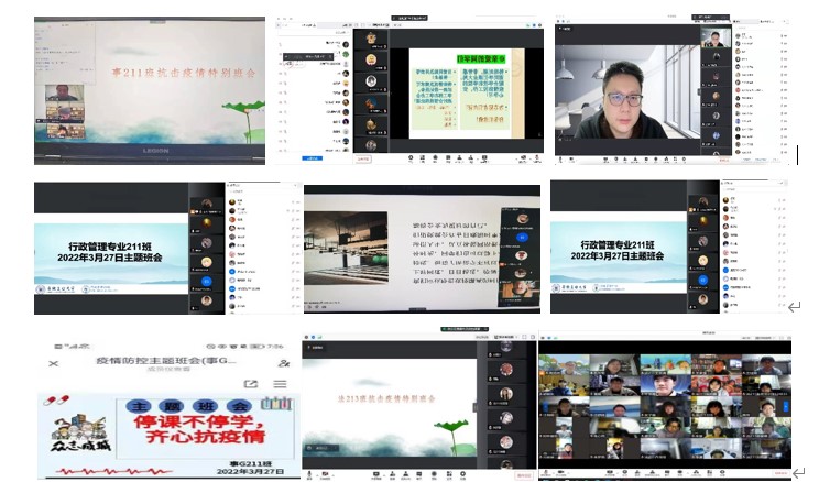 在主题班会上,各班班主任通过线上互动、幻灯片讲解、模块化解读等多种形式,进一步向学生宣传学校疫情防控规定、讲清讲明当前疫情防控的形势和要求;教育引导广大学生认识和理解校园封闭管理期间的学习及生活保障措施,要求他们严格遵守校园管理各项制度规定;进一步了解掌握了网课学习情况,提醒广大同学有序处理好学习、生活之间的关系,按时按规上好网课,提高学习效率;希望同学们保持良好心态,适当参加校园各类文体活动,如有特殊情况及时与辅导员、班主任联系。