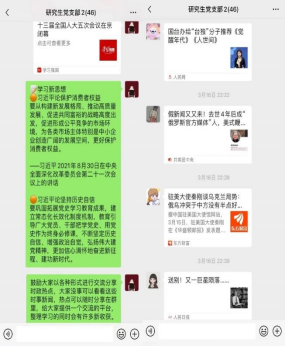 同时,各研究生团支部积极号召入党积极分子和团员参与“青年大学习”系列思想学习活动,疫情期间不误学习,以良好的思想觉悟引领保障疫情防控。