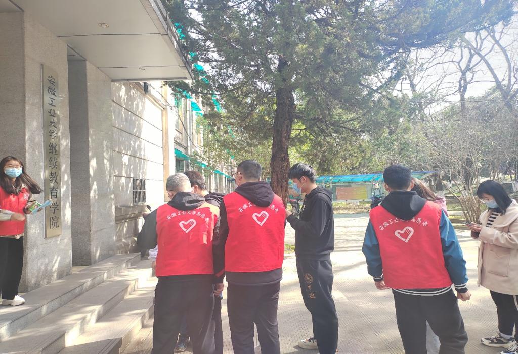 志愿者于3月6日上午协助现场大学生接种疫苗加强针。