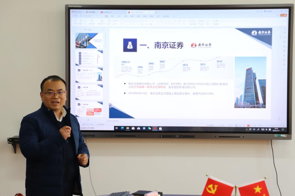 徐华良总经理作了《牵手南京证券一起奔向未来》的招聘宣传报告,介绍了南京证券及南京常府街证券营业部的基本概况、岗位设置、招聘需求及相关程序。徐华良说,南京证券公司对法学和公共管理专业人才都有需求,来安工大51视频