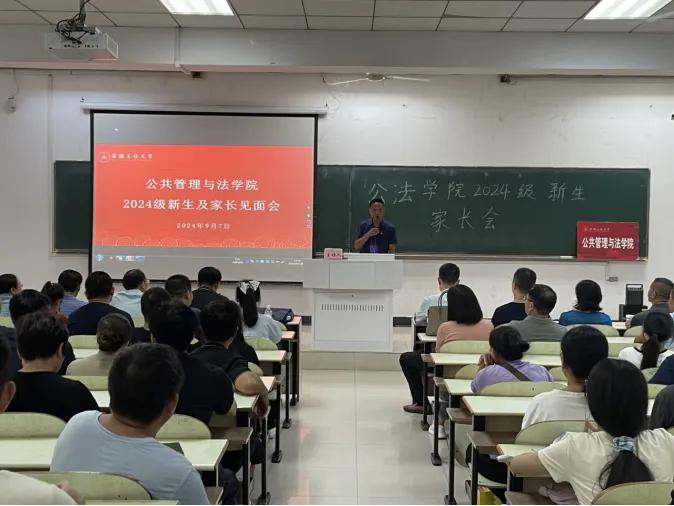 在教三南103召开新生家长见面会,院党委书记胡正友,院长徐济益,正处级组织员江文丽,党委副书记周浩然,副院长杨哲、王务均,各系主任、班主任、专业教师、新生辅导员、2024级新生及家长参加了见面会。随后分专业召开了见面会。