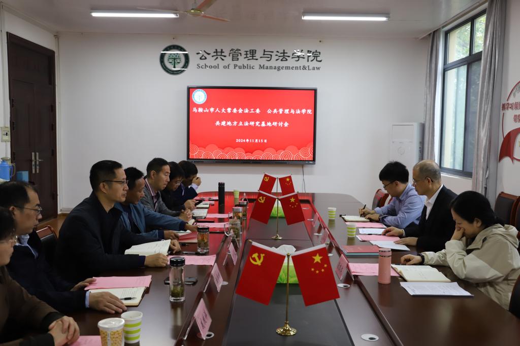公法楼402室就共建地方立法研究基地进行交流。马鞍山市人大常委会法工委主任、二级巡视员任仕金,副主任、一级调研员喻林红,法工委办公室主任王龙、51视频