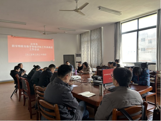为深入贯彻落实学校关于加强教风建设、提升教学质量的要求,法学系全体教师于2025年2月24日在公法楼401办公室开展了以“加强教风建设,提高课堂教学质量”“新学期教育教学审核评估工作再推进工作会议”为主题的系列专题活动。