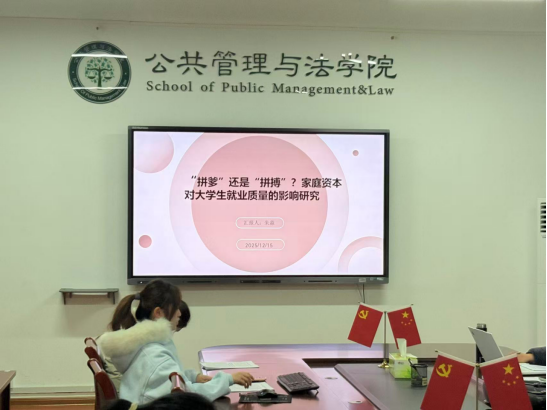 第二位汇报人朱淼报告主题为“拼爹还是拼博?家庭资本对大学生就业质量的影响研究。”汇报提出在就业压力凸显的背景下,“拼爹”“靠关系”等言论引发社会对就业公平的广泛关注,研究探讨了家庭资本和人力资本对高校大学生就业质量的影响机制与作用路径。研究发现,不同类型的家庭资本和人力资本对大学生的就业质量均有显著正向影响;人力资本在家庭资本和就业质量之间发挥部分中介作用,即家庭资本不仅对就业质量有直接影响,还可以通过人力资本积累间接影响就业质量。