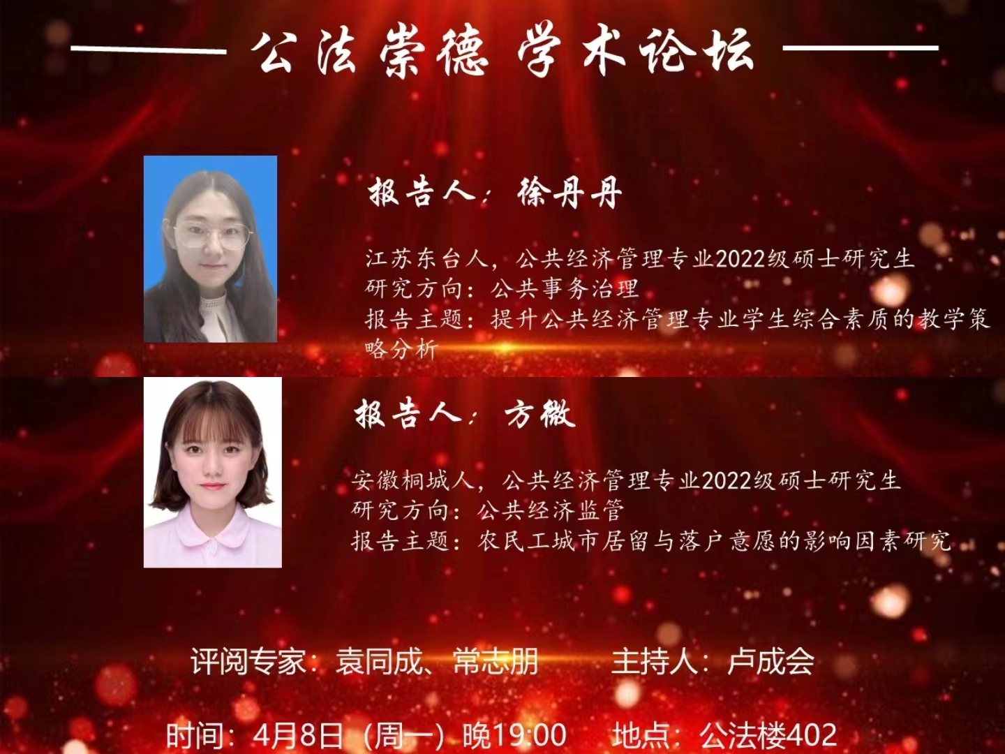 公法崇德学术论坛第十八期将于2024年4月8日(周一)晚上19:00在公法楼402学术交流中心举行,欢迎感兴趣的老师和同学参加