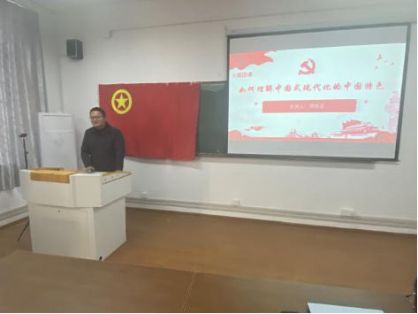 在公法楼205开展“解读二十大报告:如何理解中国式现代化的中国特色”主题团课,院团委书记邢维迢老师主讲,各年级学生代表参加。