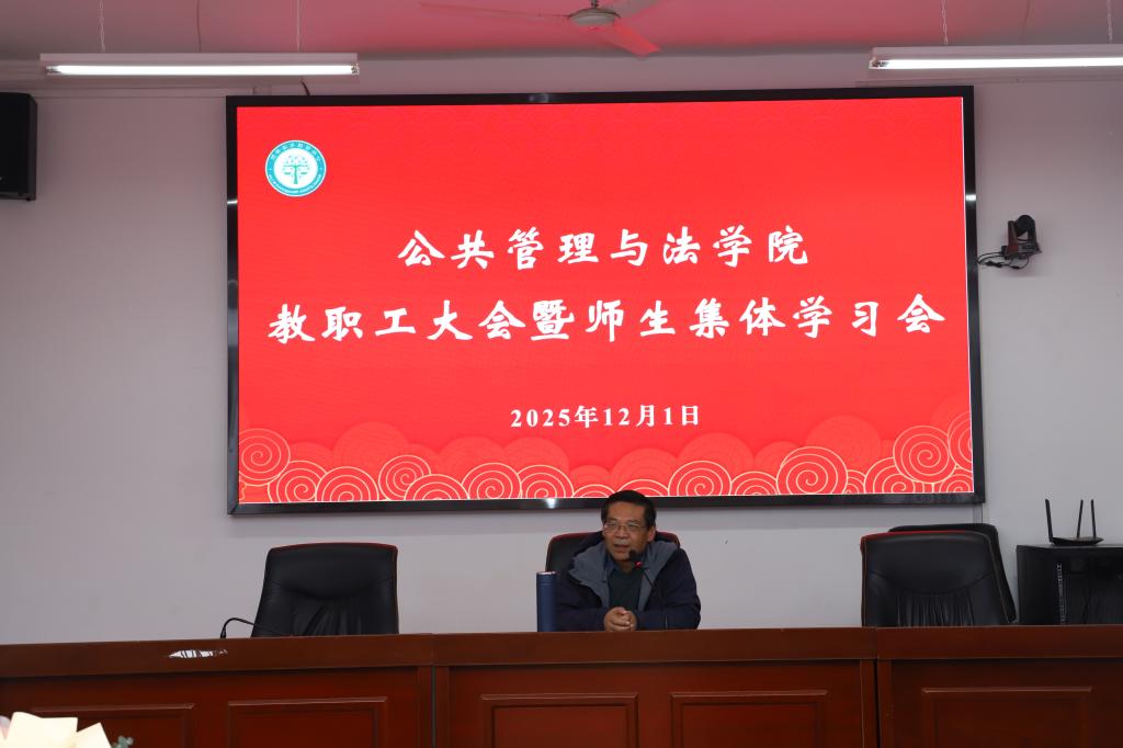 召师生集体学习会,会议特邀退休老师徐刚副教授为师生作题为“深入学习领会习近平法治思想”的专题辅导报告。学院全体教职工和党员学生代表聆听了辅导报告。